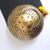 This decorative brass incense burner features a simple and elegant design. The burner has a small opening at the top for the incense stick and a wider base to catch ashes. Smoke gently flows from the opening, creating a calming and fragrant atmosphere.