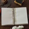 vintage handmade leather journal. Crafted with genuine leather, it radiates authenticity and charm, perfect for those who appreciate classic craftsmanship. The premium antique lock closure adds a touch of elegance and security, ensuring your thoughts and memories are safeguarded within its pages. Inside, you’ll discover 200 brown handmade pages, providing ample space for your musings, sketches, and stories to unfold. Whether it’s for journaling, sketching, or planning, this versatile journal is a timeless companion for your creative endeavors. Treat yourself or a loved one to this exquisite piece, a celebration of tradition and creativity