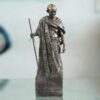 This decorative statue depicts Mahatma Gandhi, the iconic leader of the Indian independence movement and champion of non-violent resistance. The statue is made of a material colored to resemble copper and features Gandhi standing in a peaceful pose, draped in his signature dhoti. Below the statue is a quote attributed to Gandhi: “An eye for an eye makes the whole world blind.” This statue is a powerful symbol of peace, justice, and equality.