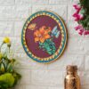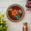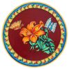 This vibrant pichwai painting features a red plate overflowing with a colorful flower and a delicate butterfly. The intricate details and rich colors make this a stunning piece of art that would be a perfect addition to any home.